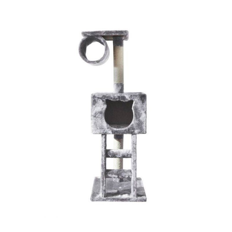 Cet arbre à chat est composé d'une niche, recouvert d'une douce peluche synthétique de couleur grise. La structure comprend un pilier en sisal naturel et d'une échelle. En hauteur, votre chat trouvera un plateau de couchage et un tunnel pour de longues siestes ou pour des instants d'observation. dimensions: 40X35-H109|