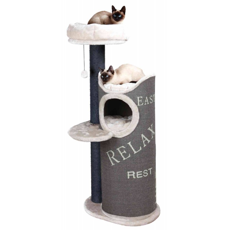 recouvert de peluche poteaux habilles de sisal naturel maison recouverte de sisal a griffer. avec 3 etages avec coussin reversible: lavable a la main plateforme avec lit douillet amovible lit douillet avec coussin reversible: lavable a la main avec jouet suspendu a un fil couleur: gris/gris clair|
