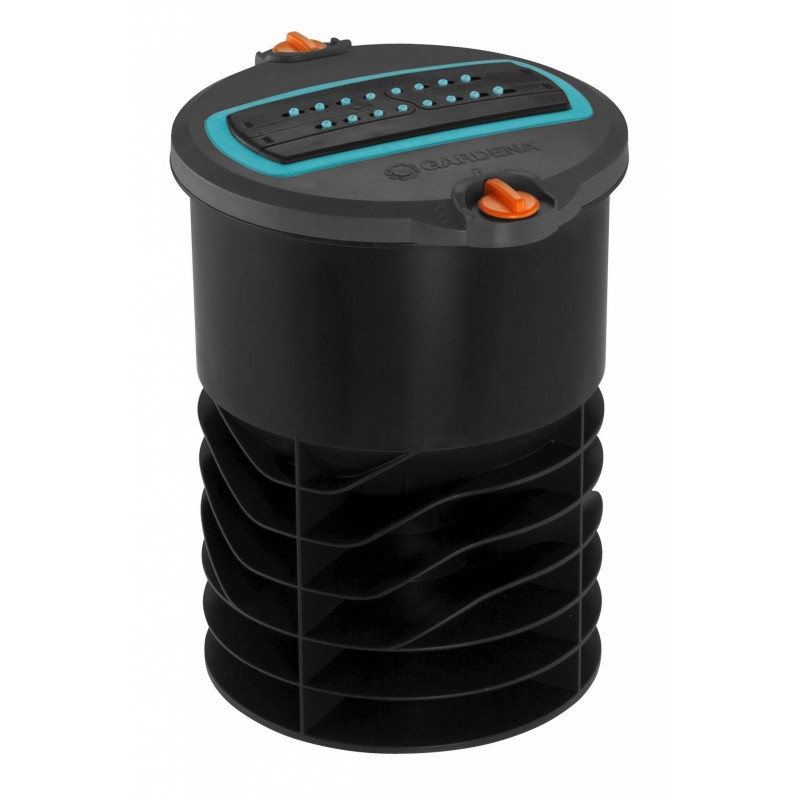 Arroseur oscillant escamotable OS 140 Idéal pour arroser des surfaces carrées ou rectangulaires. Superficie d'arrosage réglable de 2 à 140 m². Buses en plastique souple| -