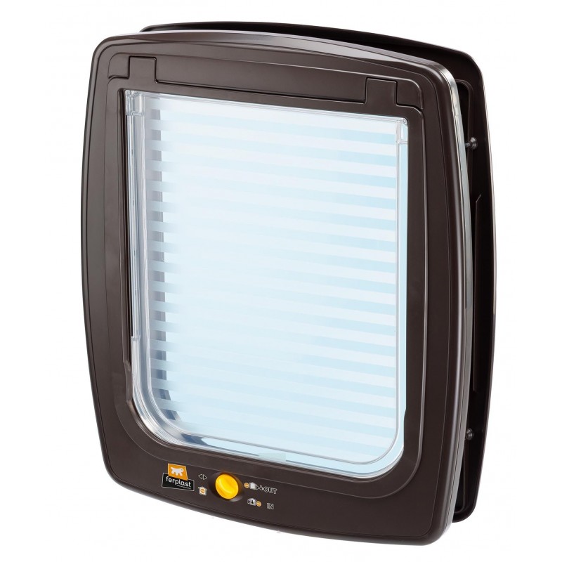 Elle est équipée d'un système de verrouillage à 4 positions qui vous permet de règler l'utilisation de la porte de quatre façons différentes: sortie, entrée, entrée et sortie, blocage total (l'animal ne peut ni entrer ni sortir). Elle dispose également d'un système spécial de protection contre le courant d'air. Elle est également équipée d'un tunnel complet qui lui permet d'être placée sur des portes de plus grande épaisseur.