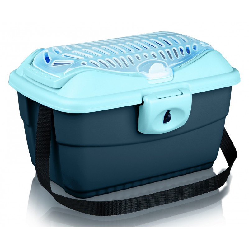 plastique peut s'ouvrir par le haut avec rabat et bandouliere confortable a porter grace aux 2 poignees fentes de ventilation pour une bonne circulation de l'air couleur: gris clair/bleu