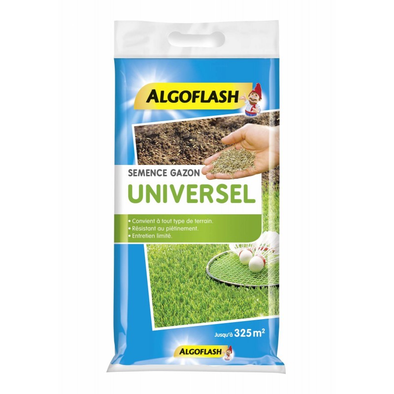 Semence Gazon Universel. Mélange de semences gazon adapté à tout type de terrain. Son installation rapide. sa résistance et son un entretien réduit en font un produit incontournable. Il est utilisable en création et regarnissage.