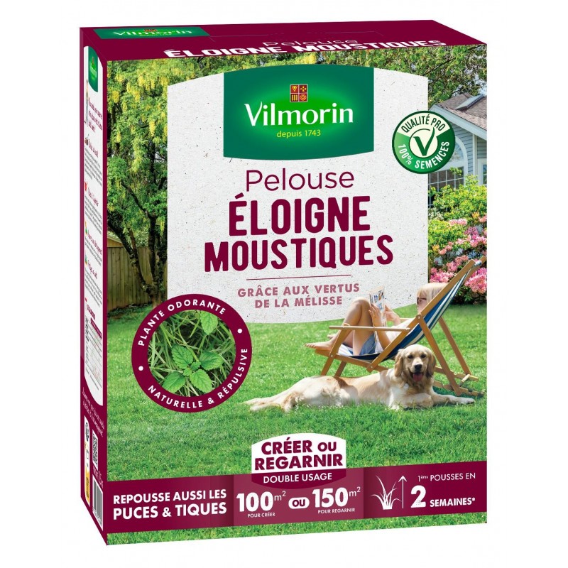 Envoyez balader les moustiques ! Vilmorin a conçu cette Pelouse ELOIGNE MOUSTIQUES pour vos moments conviviaux en extérieur. Composée de mélisse et de graminées, cette pelouse est idéale pour éloigner les moustiques.|