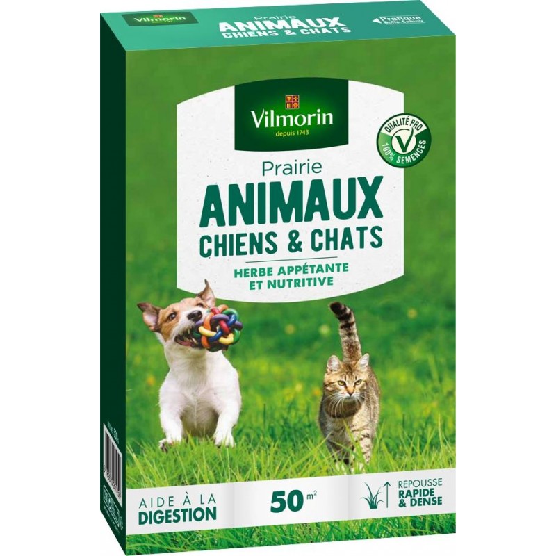 Chouchoutez vos animaux de compagnie !Vilmorin a conçu cette PRAIRIE pour ANIMAUX spécialement adaptée pour vos chiens et chats, facile à faire pousser et résistante aux piétinements. Ils vont adorer!|