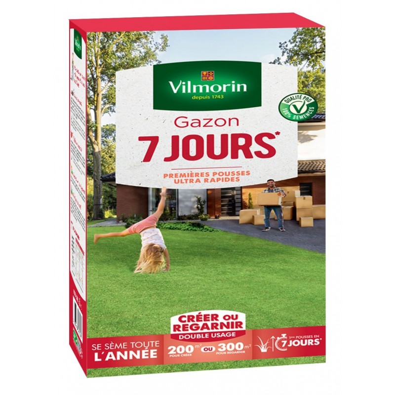 Mettez-vous au vert rapidement ! Vilmorin a conçu ce Gazon 7 JOURS offrant une mise en place extrêmement rapide avec des premières pousses visibles seulement quelques jours après le semis. A vos marques, prêts? Semez !