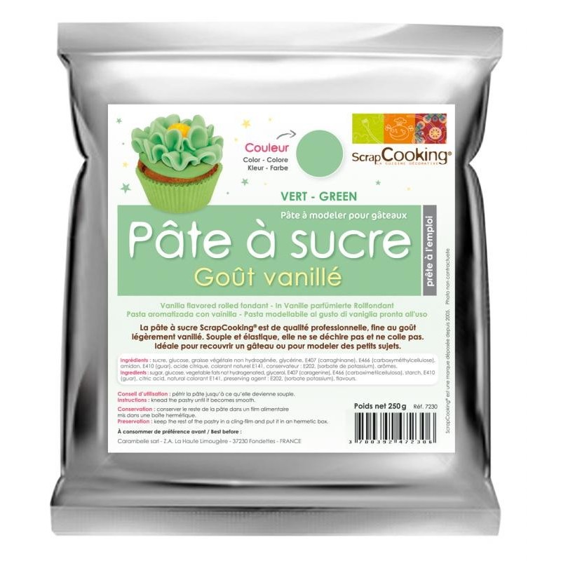 Idéale pour recouvrir un gâteau ou pour modeler des petits sujets. Cette pâte à sucre est de qualité professionnelle, fine au goût légèrement vanillé.