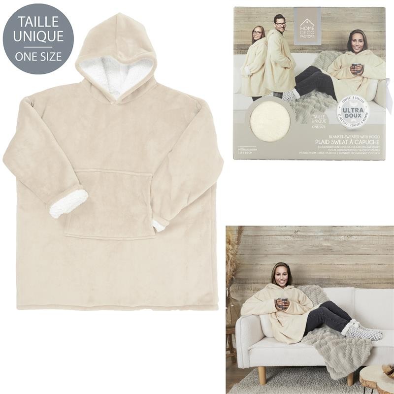 Sweat À Capuche Sherpa Beige 85X118-HOME DECO FACTORY
