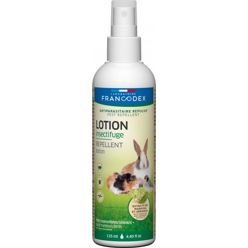 Formulée à base d'extraits de margosa et de géraniol, aux propriétés répulsives, la LOTION INSECTIFUGE FRANCODEX protège votre animal de toute infestation par des parasites. La formulation douce de cette lotion ne nécessite aucun rinçage.