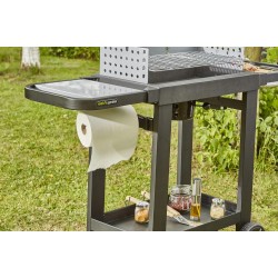 Surface de cuisson (L.57 Xl.30 cm) composée d'une grille en acier chromé avec trappe pour permettre le chargement du charbon de bois et de 2 poignées amovibles