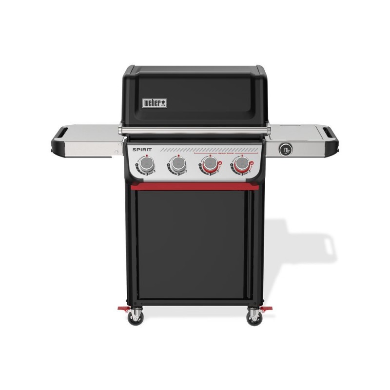 Barbecue gaz Spirit EP-425 Plancha. 4 brûleurs en acier inoxydable, une diffusion de la chaleur homogène et un contrôle de la température grâce au thermomètre digital. Avec mode boost. Allumage facile de chaque brûleur grâce à l'allumage SnapJet. Barres flavorizers en acier inoxydable. Suface de cuisson : 61 x 45 cm. Grilles de cuisson en fonte émaillé 50/50 plancha. Grille de réchauffe.Tablettes latérales et plan de contrôle peints. Rails compatibles avec Weber Work (accessoires clipsables). Espace de rangement pour une bouteille de 13kgs. 2 roues résistantes aux intempéries. Garantie 10 ans cuve et couvercle. Nombre de personnes : 15|