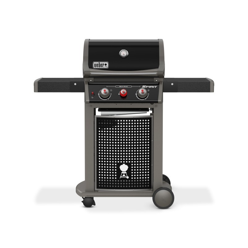 Le barbecue à gaz Spirit Classic E-220S est équipé de deux brûleurs en acier inoxydable et d’un brûleur de saisie. Ses deux tablettes latérales noires sont pratiques pour y placer les plats de service et les épices, tandis que les crochets à ustensiles permettent d'avoir les ustensiles de barbecue toujours à portée de main. Cuve : fonte d'aluminium / couvercle : acier émaillé