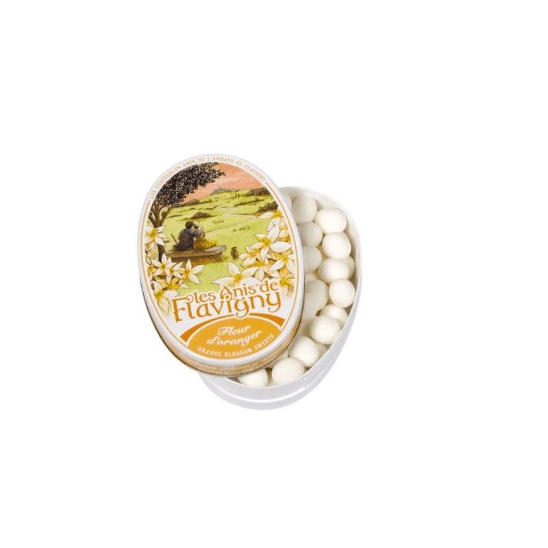 INGREDIENTS :du sucre, arôme naturel et extrait de fleur d’oranger et une graine d'anis vert (0.2%) au coeur du bonbon.