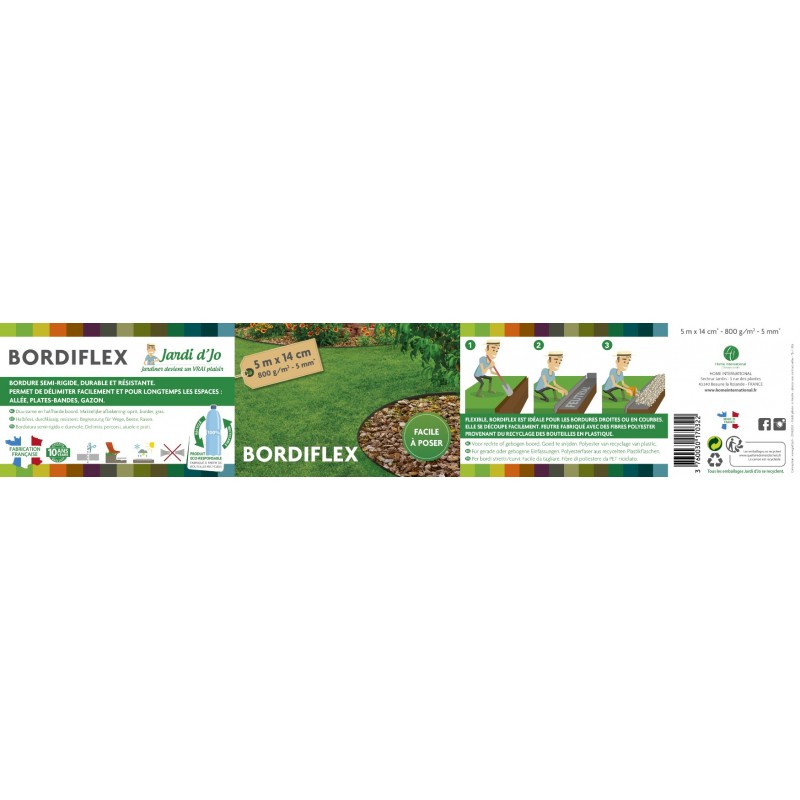 Bordiflex est une bordure flexible et polyvalente, parfaite pour une pose droite ou courbée selon vos besoins d’aménagement. Légère, durable et semi-rigide, elle se découpe facilement pour s’adapter à toutes les configurations. Grâce à sa souplesse, elle n’endommage pas les lames de tondeuse et résiste efficacement au rotofil. Fabriquée en France, Bordiflex est une solution robuste et pratique, idéale pour structurer vos espaces extérieurs,|