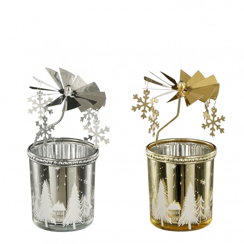Photophore Éolienne Flocon Or/Argent En Fer H15.5-Ø8-vendu à La Pièce-MICA DECORATIONS