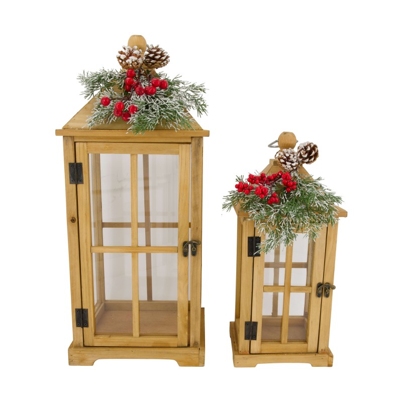 Lanterne + Sapin + Baies Naturel En Bois 24X24X56.5-DIJK