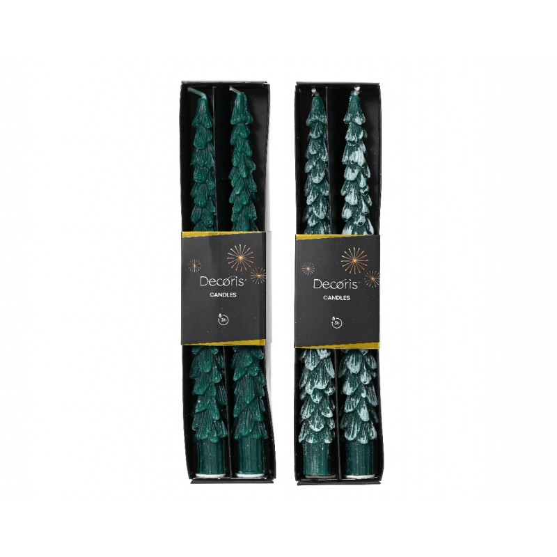 Bougie cire bougie longue sapin a/neige- sans neige 2ass