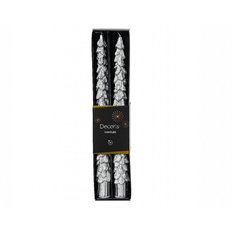 Cierge Sapin X2 Argent En Paraffine H26.5 - Vendu À La Pièce-DECORIS