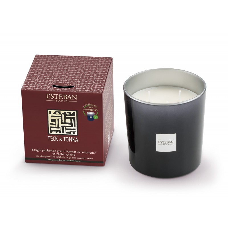 Bougie Parfumée Rechargeable Bleu Teck/Tonka 450G-ESTEBAN