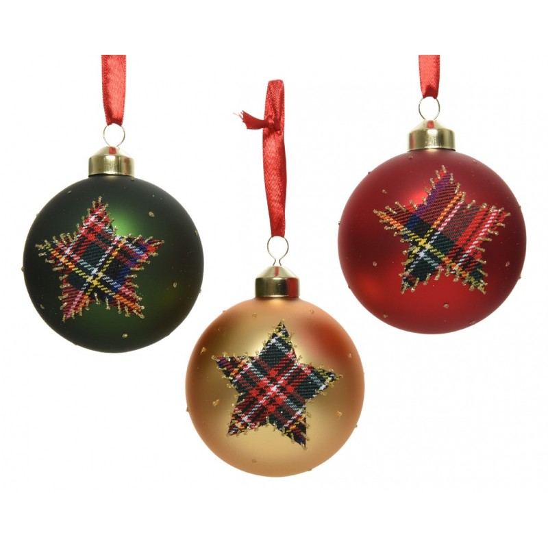 Boule vr etoile ecossais a/susp ø8 assortie 3cls