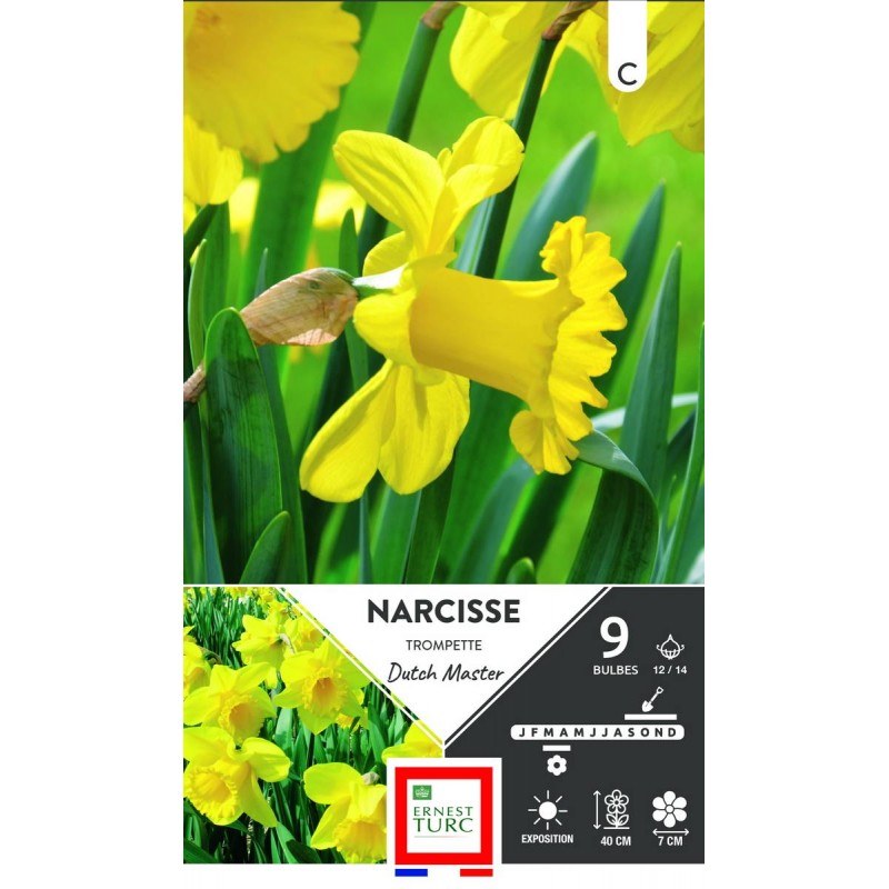 Narcisse dont la fleur apparaît en mars avril et la fleur jaune vif possède une longue trompette. jaune elle aussi.