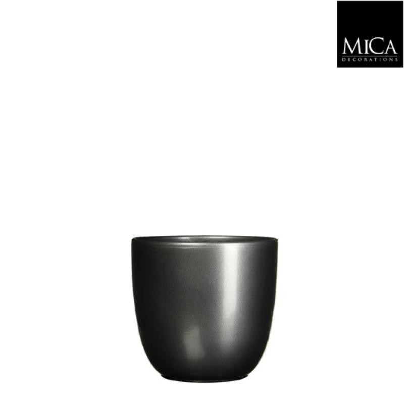 Cache-Pot Tusca Rond Anthracite En Céramique H13-Ø13.5-MICA DECORATIONS