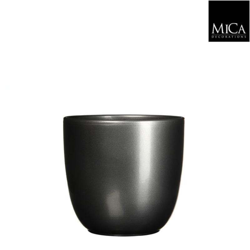 Cache-Pot Tusca Rond Anthracite En Céramique H18.5-Ø19.5-MICA DECORATIONS