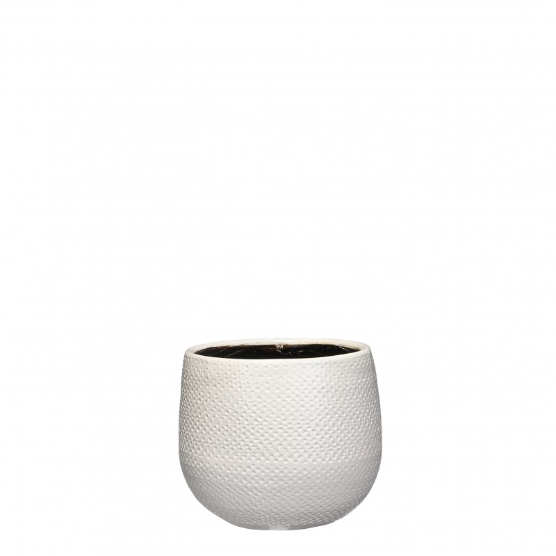Cache-Pot Gabriel Rond Blanc En Céramique H14-Ø16-MICA DECORATIONS