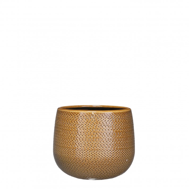 Cache-Pot Gabriel Rond Ocre En Céramique H16-Ø18-MICA DECORATIONS