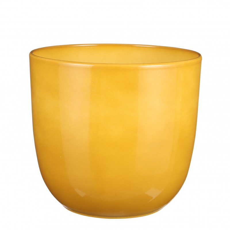 Cache-Pot Tusca Rond Ocre En Céramique H25-Ø28-MICA DECORATIONS