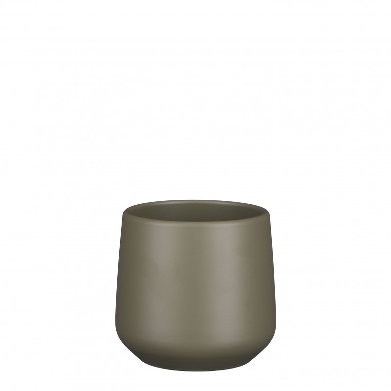 Cache-Pot Amber Rond Vert Mat En Céramique H13.5-Ø14-MICA DECORATIONS