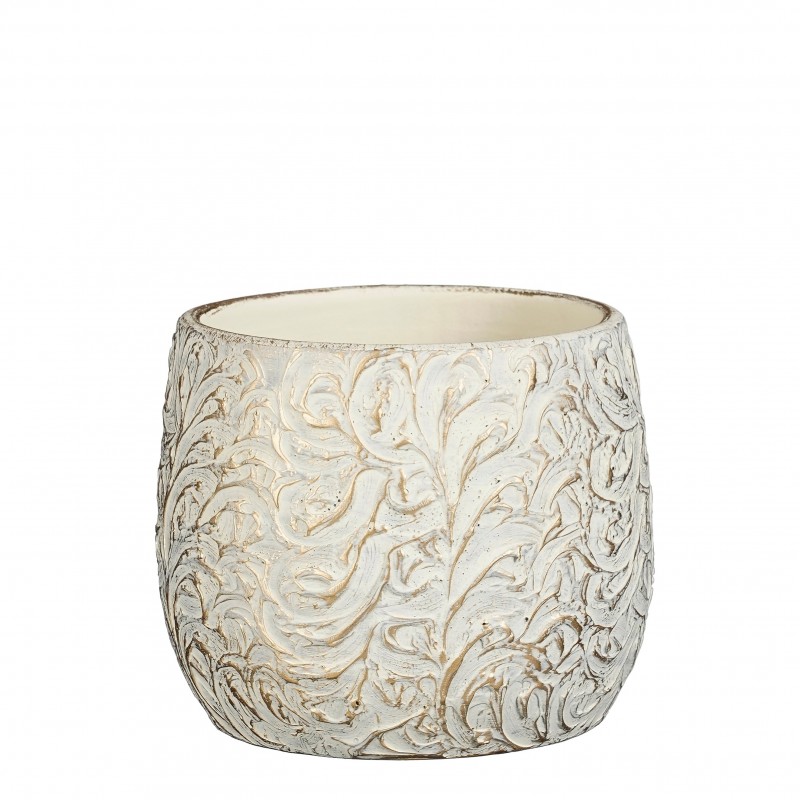 Cache-Pot Arthur Blanc Cassé En Terre Cuite H15-Ø19.5-vendu à La Pièce-MICA DECORATIONS