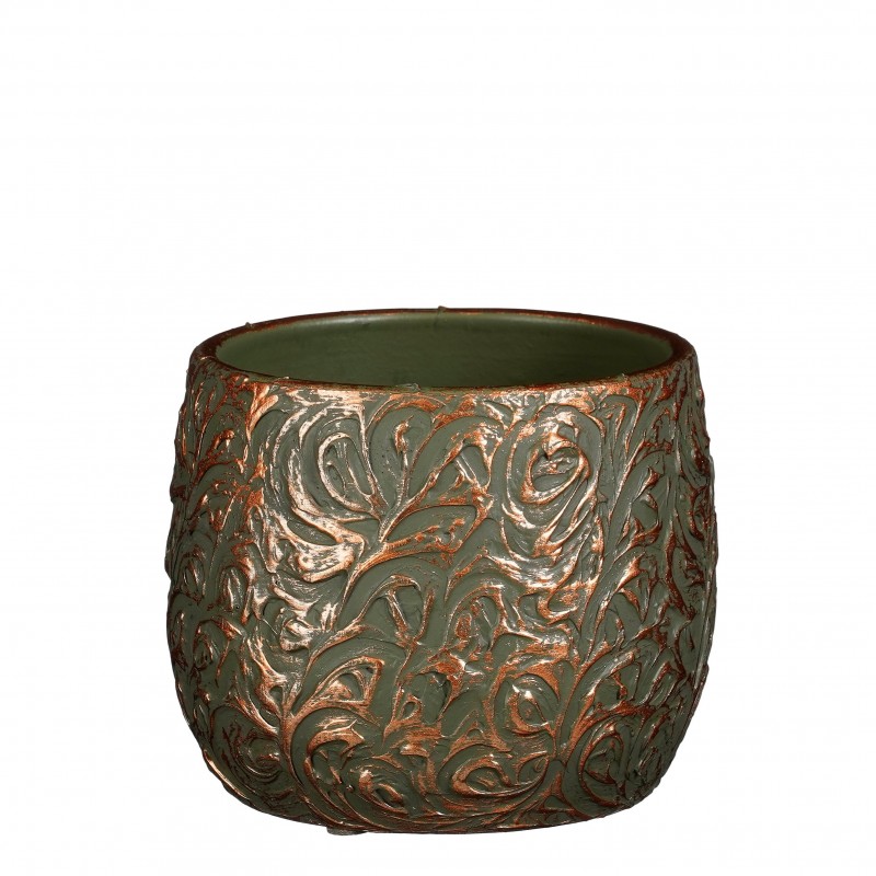 Cache-Pot Arthur Vert En Terre Cuite H15-Ø19.5-vendu à La Pièce-MICA DECORATIONS