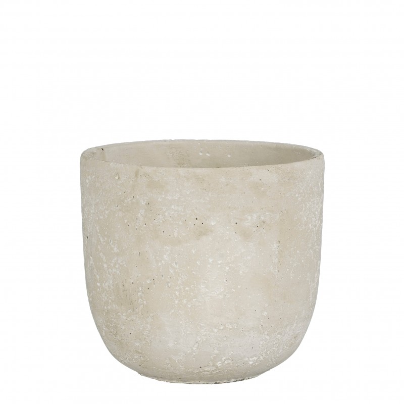 Cache-Pot Jimmy Rond Gris Clair En Ciment H14.5-Ø15.5-MICA DECORATIONS