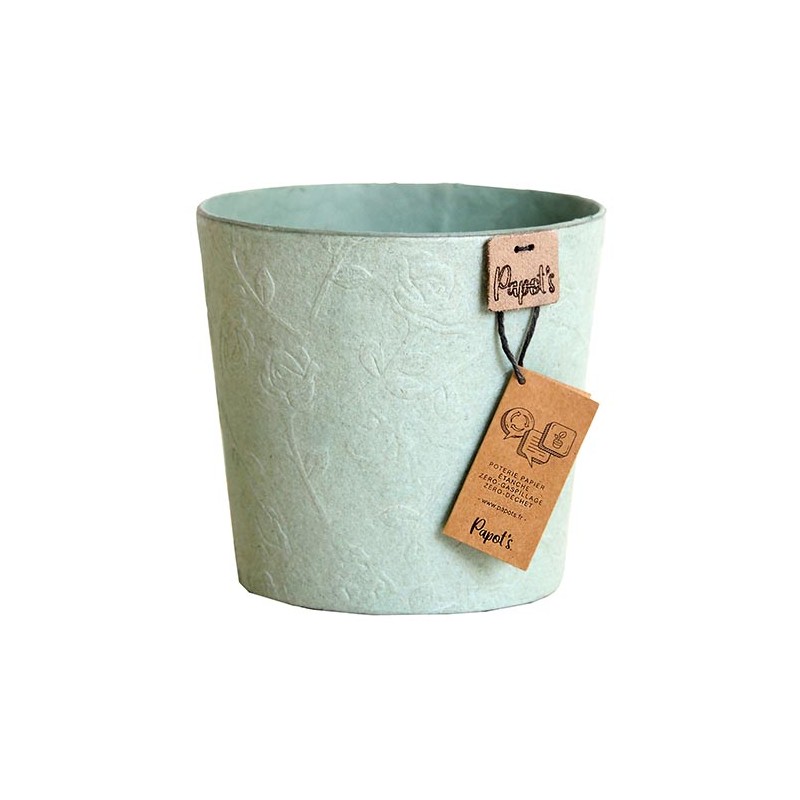 Cache-Pot Prairie - Taille : Ø12.5-H15.5 - Litrage : 1.547L - Forme : Rose - Couleur : Vert Amande - Matère : Papier - Finition : Mat - Emplacement : Interieur