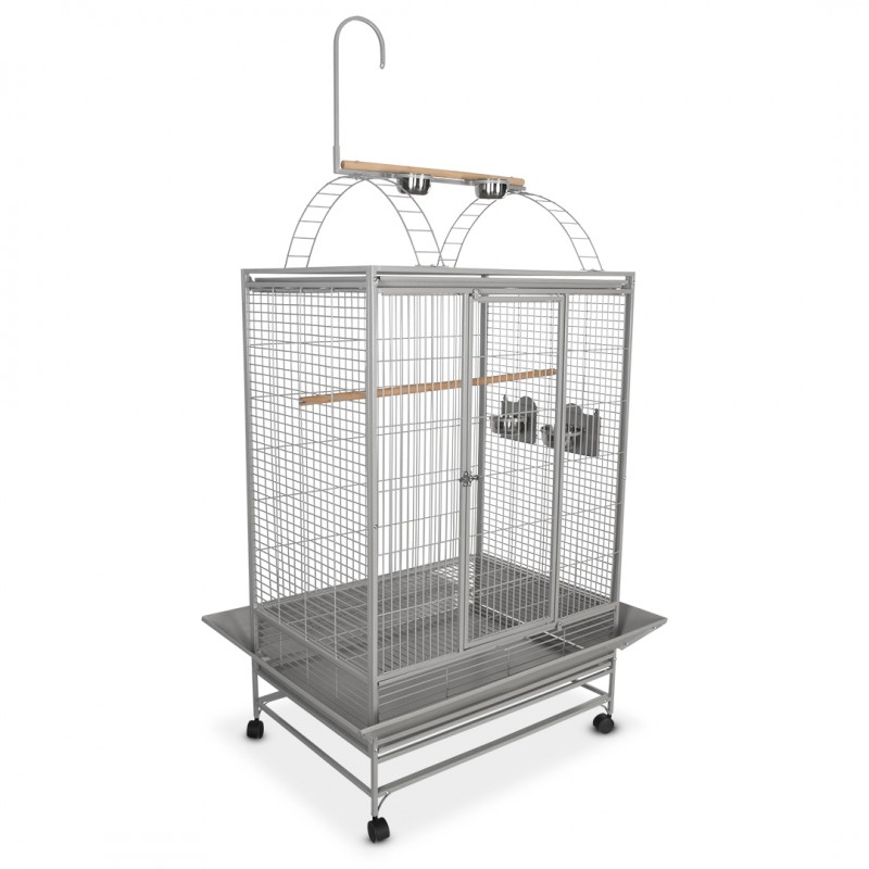 Cette cage spacieuse et résistante Rico pour perroquets est équipée d`un toit ouvrant avec une zone de jeu sur le toit. Avec 4 abreuvoirs/mangeoires et 2 perchoirs. Sans oublier un tiroir en métal et un bac de collecte pour les saletés. La cage est facile à déplacer grâce aux 4 roulettes. Largeur: 91cm Profondeur: 66cm Hauteur: 175cm