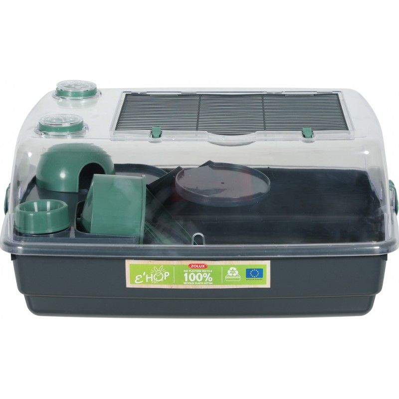 La cage éco-conçue EHOP pour hamster avec bac en plastique 100% recyclé.