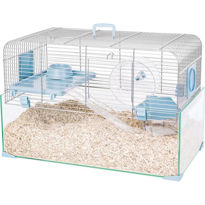 La cage PANAS COLOUR 50 est un habitat évolutif pour souris et hamsters, élaborée à l'aide d'un vétérinaire. Elle se compose d'un bac en verre, ce qui facilite le nettoyage et permet ainsi d'observer les petits rongeurs.