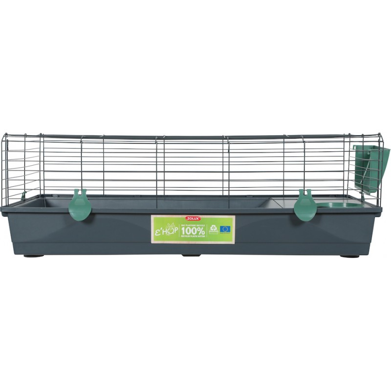 La cage éco-conçue EHOP pour lapin nain et cochon d'inde avec bac en plastique 100% recyclé.