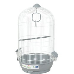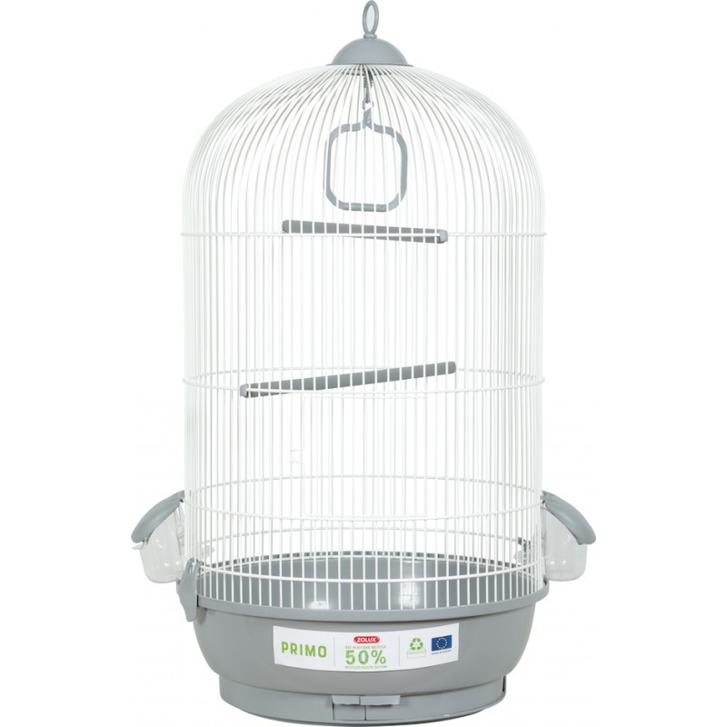 La cage éco-conçue PRIMO Carmen pour oiseaux domestiques avec bac en plastique 50% recyclé. Elle s'intègrera facilement dans les intérieurs grâce à ses coloris classiques et actuels gris clair et blanc.