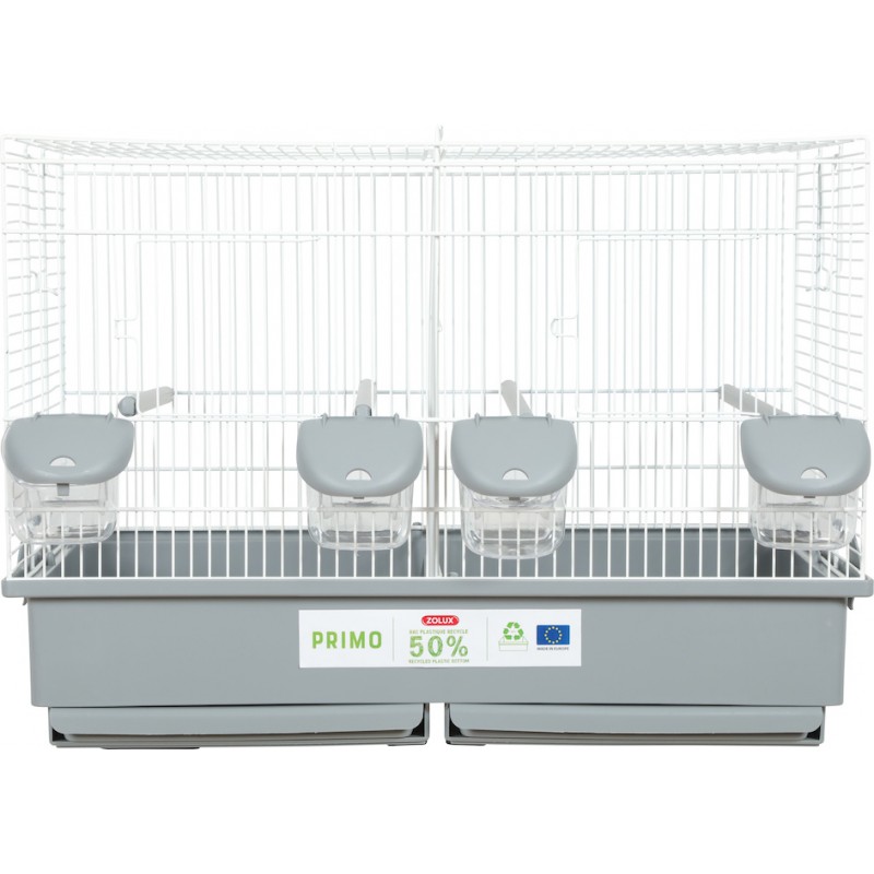 La cage éco-conçue PRIMO Cati pour oiseaux domestiques avec bac en plastique 50% recyclé. Elle s'intègrera facilement dans les intérieurs grâce à ses coloris classiques et actuels gris clair et blanc.