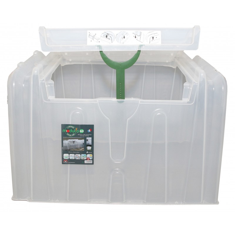 Le tunnel Modul’o 60 accélère la croissance et protège vos plants et semis au potager. Facile à installer et à déplacer, modulable en longueur. Il récupère l’eau de pluie et d’arrosage et vous évite des manipulations. Avec ses embouts de fermeture et ses piquets d’ancrage, il régule l’humidité, les températures et protège des animaux nuisibles et des intempéries. Il vous permet d’abriter deux rangées de semis ou de plants. Aves sa trappe amovible, vous pouvez intervenir sous le tunnel sans le déplacer ! Une béquille verrouille la position fermée et règle l'entrebâillement de la trappe pour la ventilation du tunnel. En plastique épais et recyclable, traité anti-UV, il vous donnera satisfaction de longues années. Il est idéal pour les repiquages de tomates, poivrons, aubergines etc…