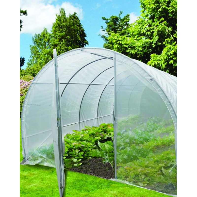 Structure en acier galvanisé. Diam 25 mm. 1 porte. Couverture en gaine PE de 120 µ garantie 2 ans.