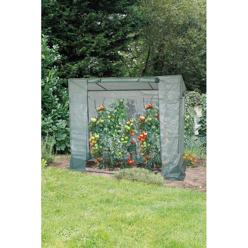 Dimensions: largeur 2 m. profondeur 0.77 m. hauteur 1.69/1.49 m. Une serre pour la culture et la protection des plantes. Film armé en PE translucide vert. résistant au déchirement. Porte facile à manier pour aération et culture. Pente de toit pour écoulement des eaux de pluie.