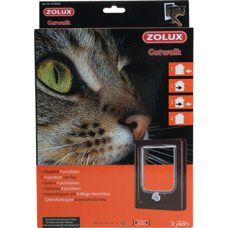 Chatière adaptée aux portes en bois variant de 11 à 25 mm d'épaisseur.- Le battant de taille 170X155 mm convient à toutes les races et tailles de chats. ADAPTABILITE: Les différents modèles Catwalk permettent de s'adapter à tous types de portes (plus ou moins épaisses, en bois ou vitrées) et à différentes tailles d'animal.TRANQUILLITE: Le système de verrouillage 4 positions - entrée seule, sortie seule, entrée et sortie libres, verrouillage complet - permet à l'animal d'être libre de tout mouvement et assure au maître une tranquillité d'esprit. FIABILITE: Fabriquées au moyen de matières de haute qualité (battant en polycarbonate stabilisé avec U.V. et porte en Lustran ' ABS fabriqué par Bayer), les chatières Catwak sont garanties 3 ans.|
