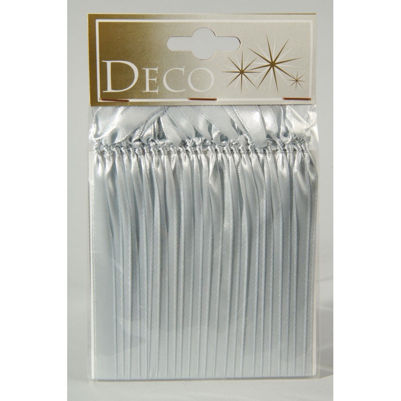 Suspension ornement ruban argent, attache boule, 25 rubans 120mm