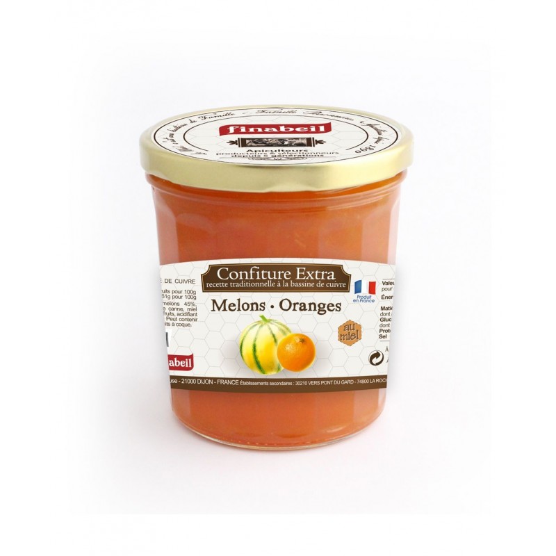 Fruits (melon 45%, orange 10%), sucre de canne, miel 6%, gélifiant (pectines), acidifiant (jus de citron concentré).