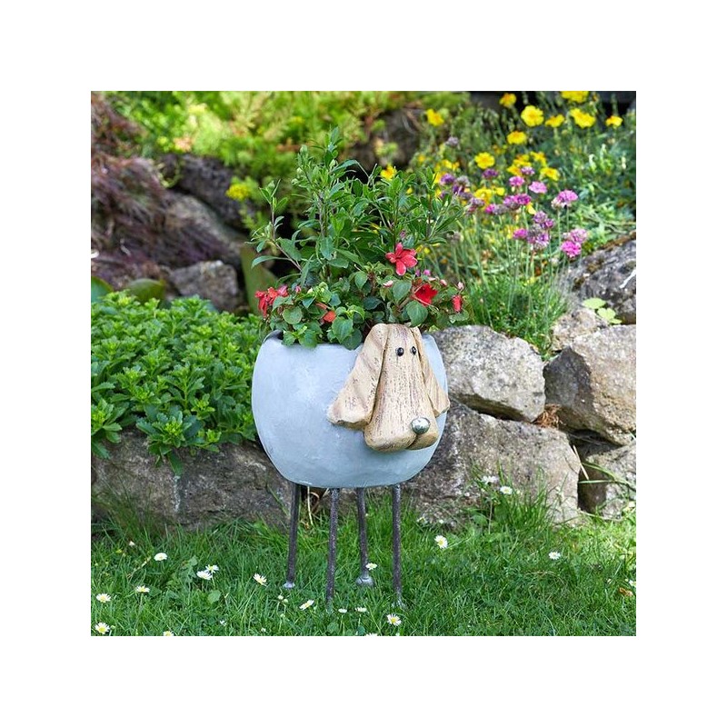 CACHE-POT CHIEN EN PIERRE DE BOIS