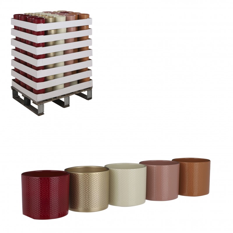 Pot rond Era relief ø13.5-H12.5 5ass rose clair, marron, or, rouge foncé, beige