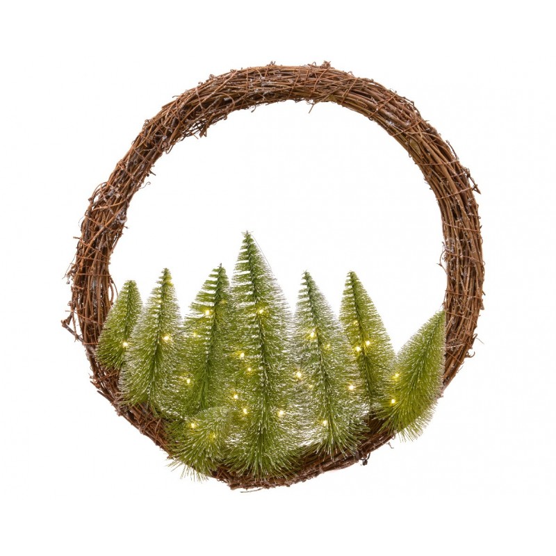 Couronne saule a/foret a/led pil ø50-30l vert/blanc chaud