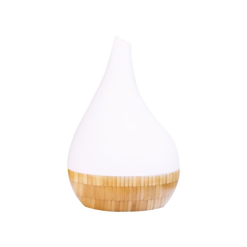Diffuseur électrique idéal pour profiter pleinement des vertus des huiles essentielles. Appareil en bambou et verre avec un réservoir d'eau de 100 ml. Diffusion jusqu'à 30m². Couleurs changeantes et diffuses.|